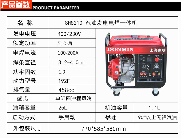 100-200A三相 手動5KW汽油發電電焊一體機SHS210