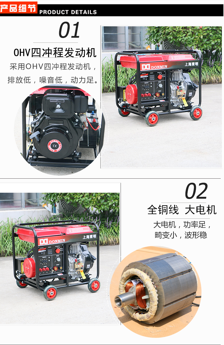 采用成熟的傳動技術和噴油技術,有效降低了震動和噪聲,并且燃燒充分 加強型移動輪,使用方便,配備移動輪,經久耐用,不易變形,而且移動方便。