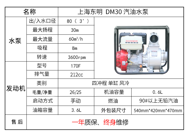 3寸 (80)汽油動力自吸抽水泵 DM30