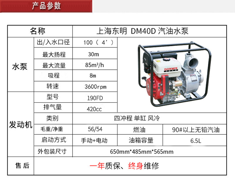 4寸 (100)汽油動力自吸抽水泵電動 DM40D