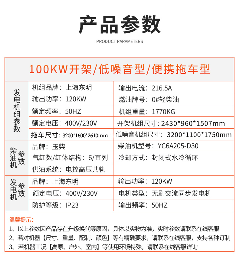 東明 DONMIN 100kw低噪音大型玉柴柴油發(fā)電機(jī) GF2-120Y(ATS)-1
